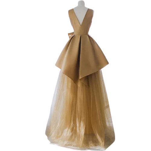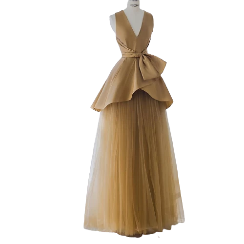 Handgemachtes breites Trägerkleid mit langem Abendkleid und V-Ausschnitt