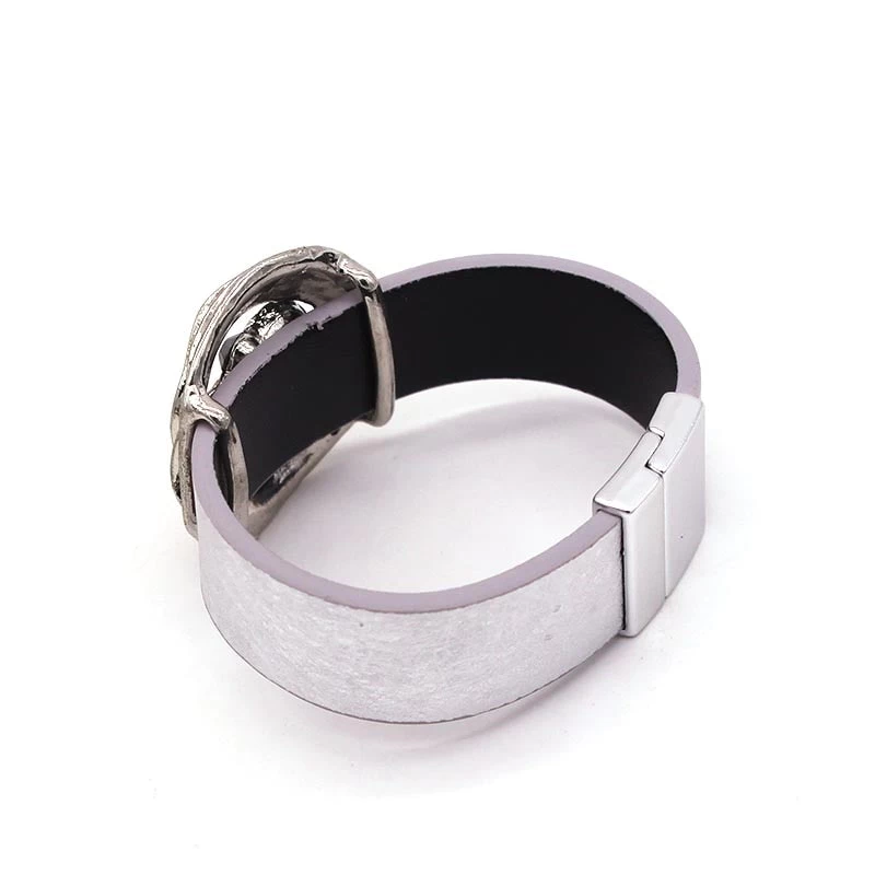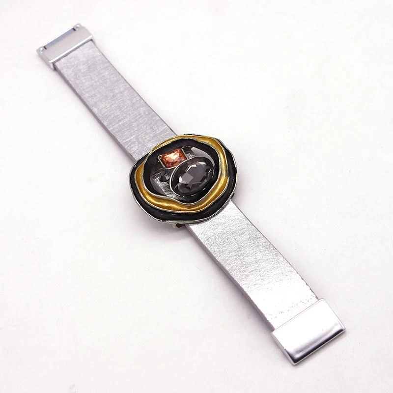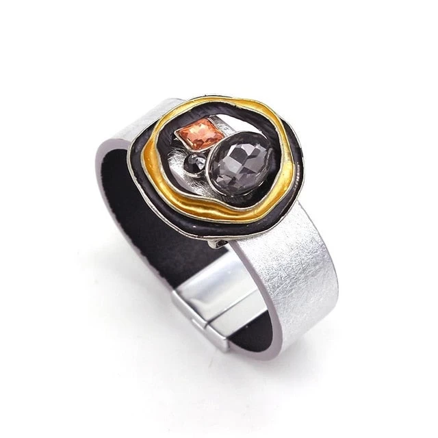 Handgemachtes breites Lederarmband im Metallic-Stil mit Kristallen.