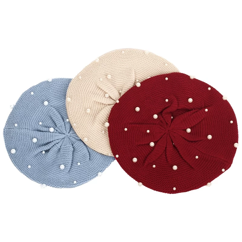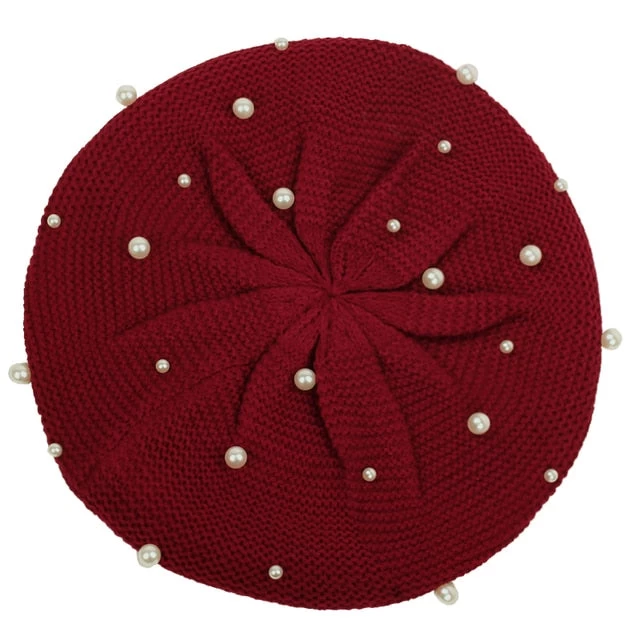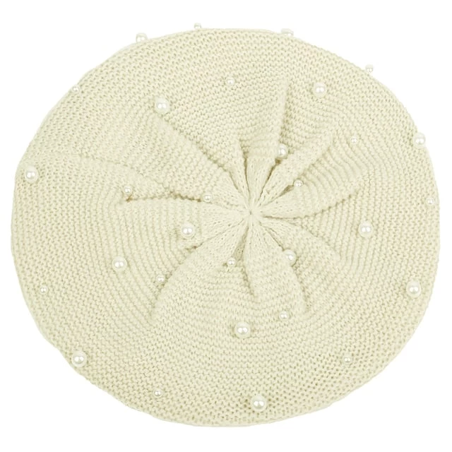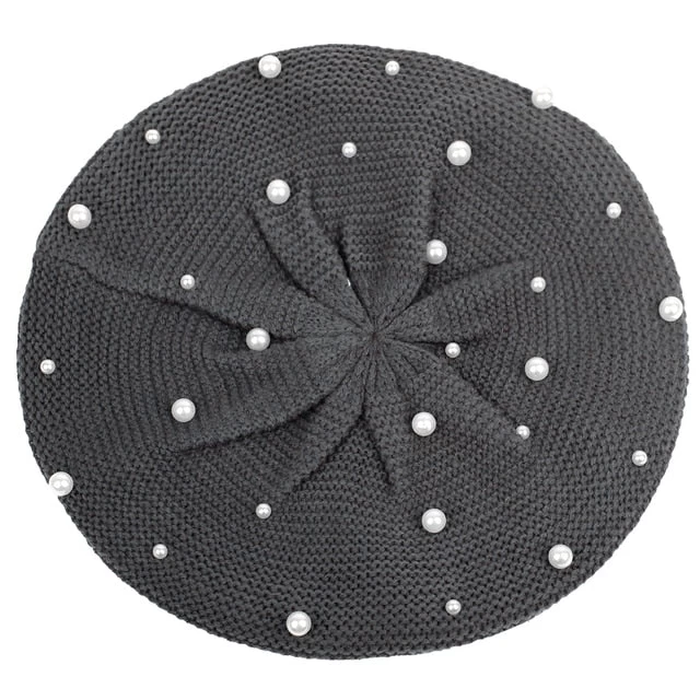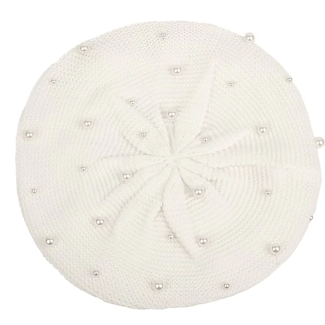 Lässige Baskenmütze aus Wolle, verziert mit Perlen.