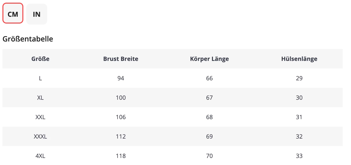 WICHTIG: Bitte überprüfen Sie die Größentabelle, bevor Sie Ihre Bestellung aufgeben.