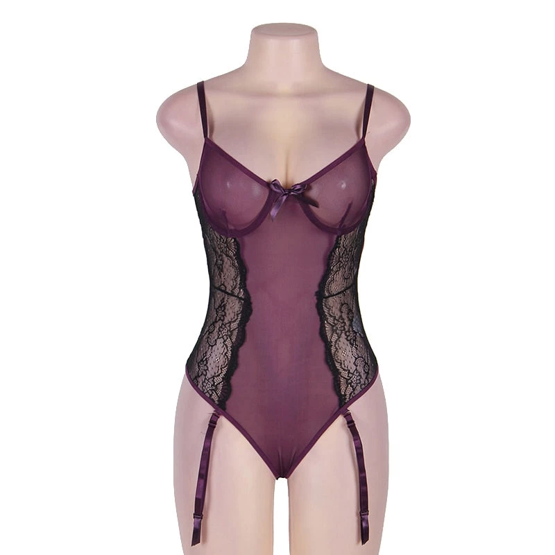 Elastischer und sexy Body mit Trägern und dekorativer Spitze.
