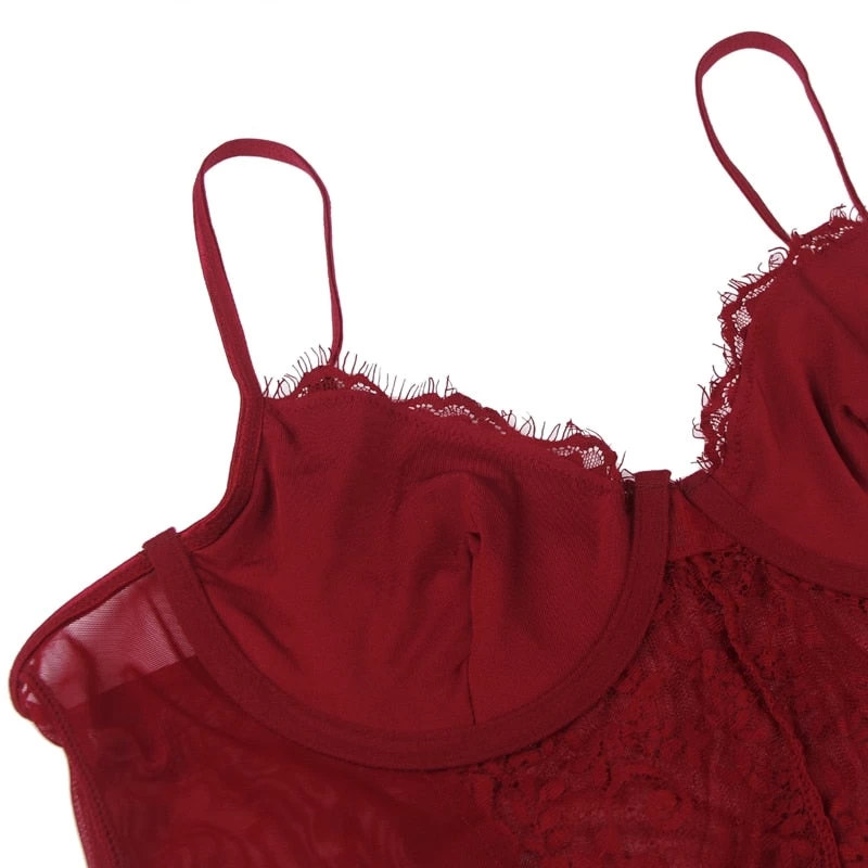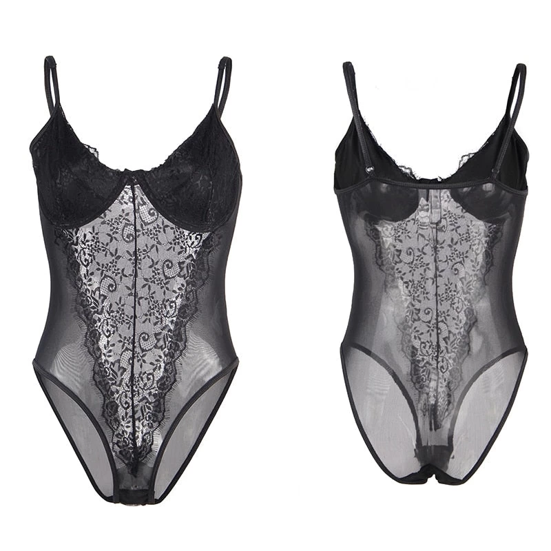 Elastischer und sexy Body, mit Trägern und Transparenzen.