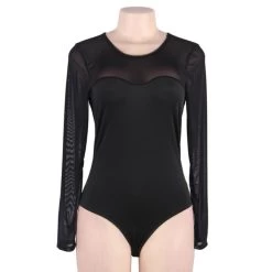 Elastischer und sexy Body mit langen Ärmeln und Transparenzen.