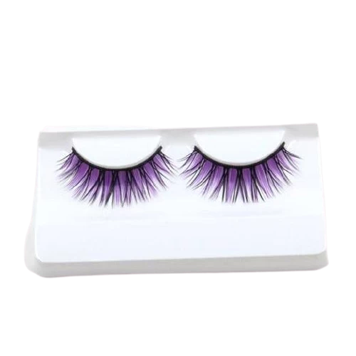 Schwarze und lila falsche Wimpern mit gekreuzten Haaren.
