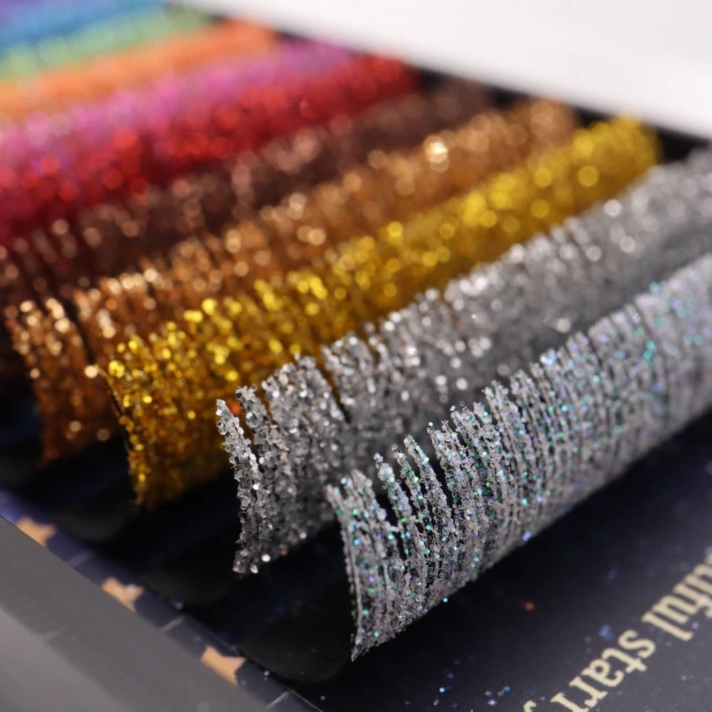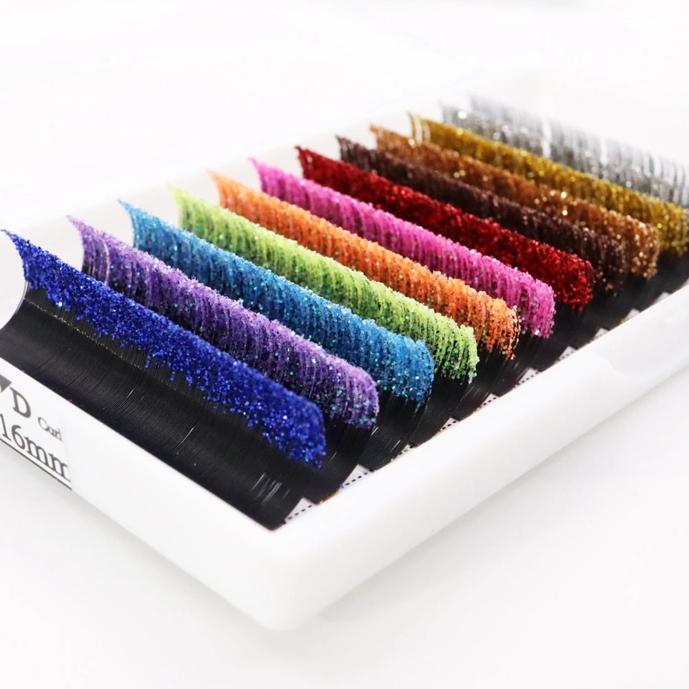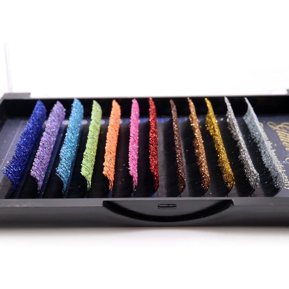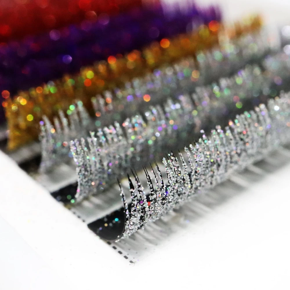 Handgemachte falsche Wimpernverlängerung, glänzend und in verschiedenen Farben.