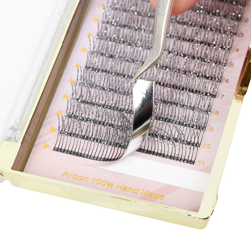 Handgemachte falsche Wimpernverlängerung, mit Glitzer und verschiedenen Farben.