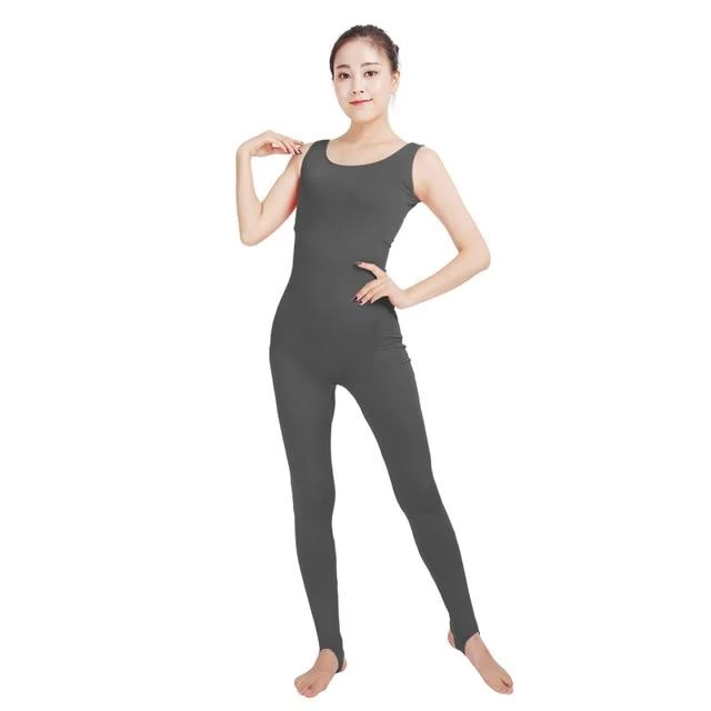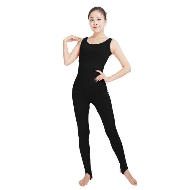 Ärmelloser Ganzkörper mit U-Boot-Ausschnitt und Fußriemen.
