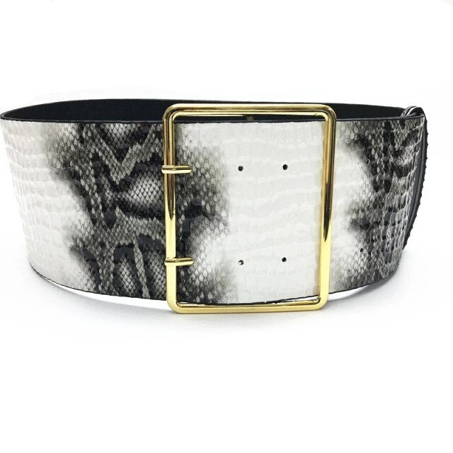Gürtel. Schnalle. Breiter Gürtel. Schlangenmuster. Mode. Weiß. Schwarz. Rot. Grün. Blau. Kaffee.