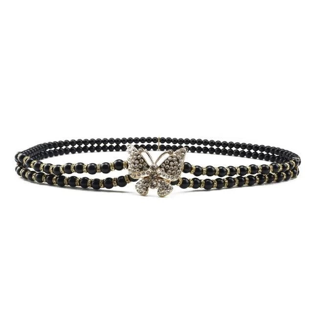 Gürtel. Dünn. Elastisch. Perlen. Schmetterling. Schnalle. Kette.