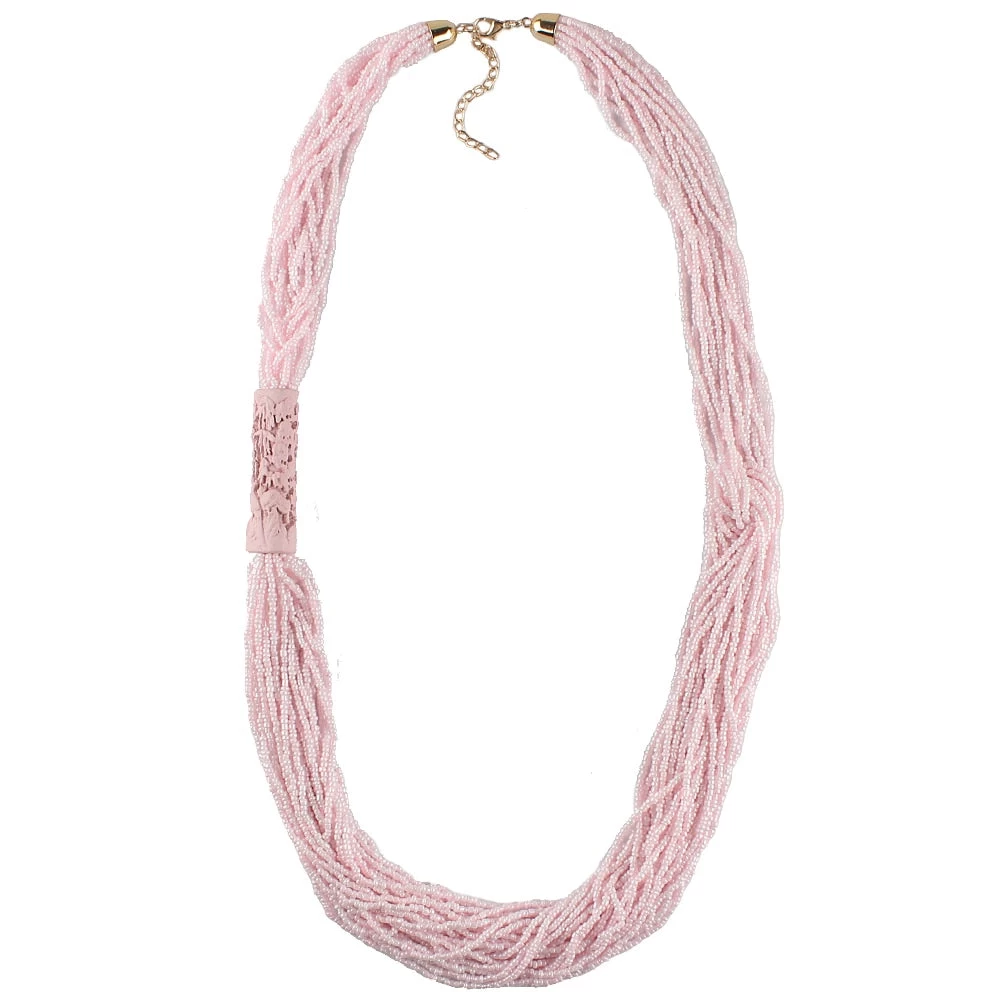Lange Halskette im böhmischen Stil in Rosa.