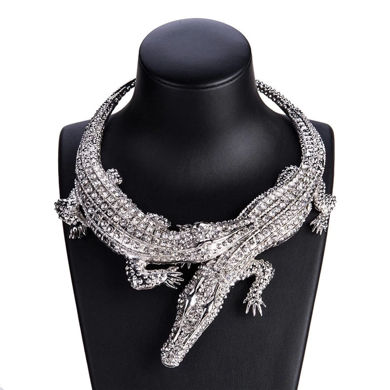 Kristall-Krokodil-Halskette mit elegantem Design.