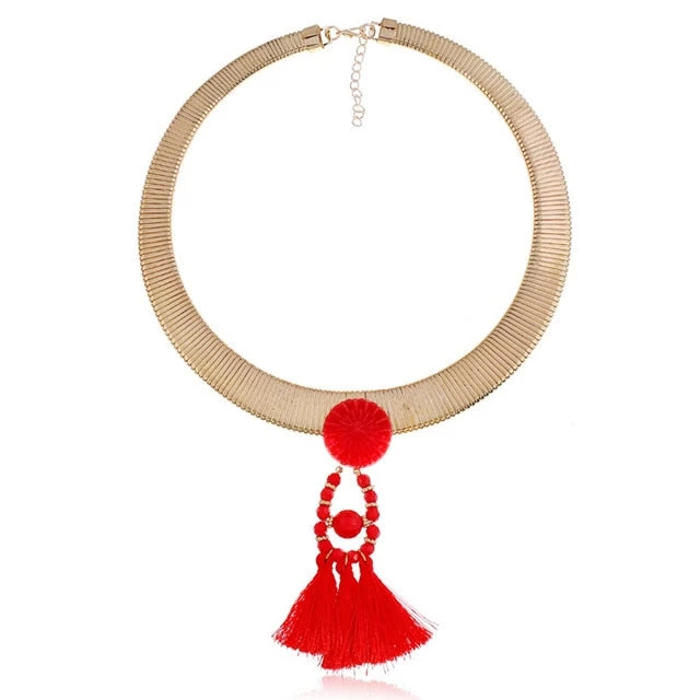 Handgemachte ethnische Runde Breite Quasten Halskette