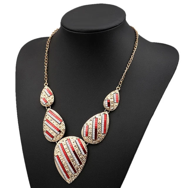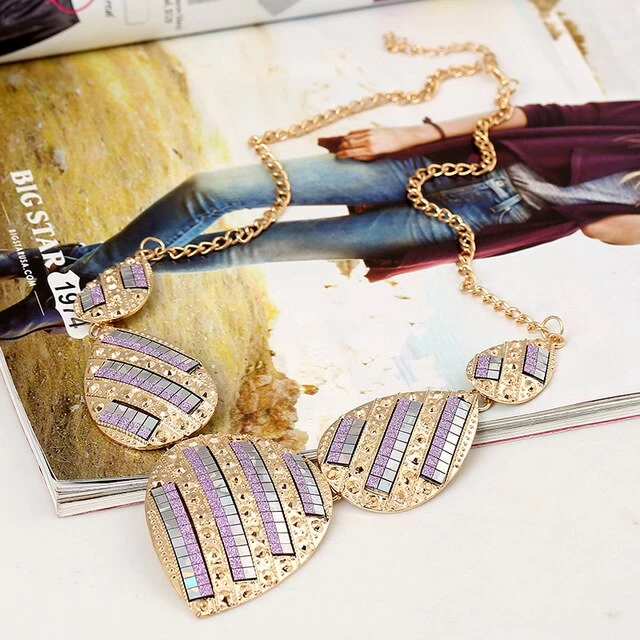 Mehrfarbige geometrische Metallanhänger-Halskette mit Strass.