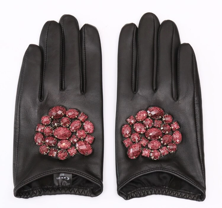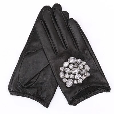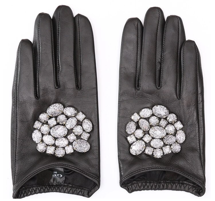 Schwarze Lederhandschuhe handgefertigt mit Kristallen.