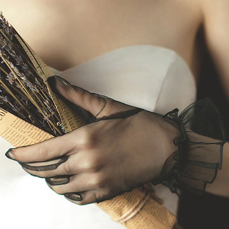 Elegante elastische Handschuhe aus Tüll, ideal für eine besondere Nacht, in verschiedenen Farben.