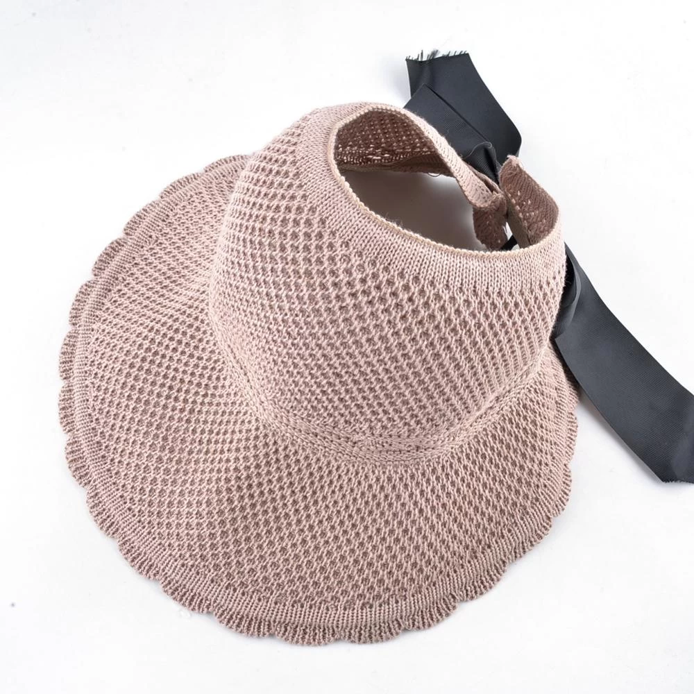 Faltbare Strickmütze mit großem Visier und Rückenschleife.