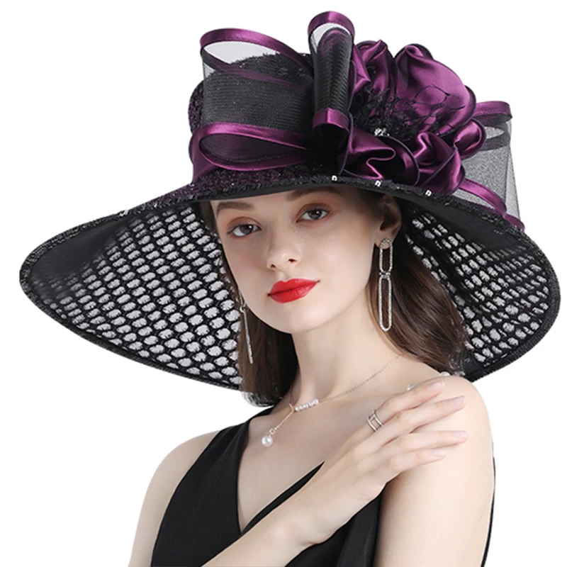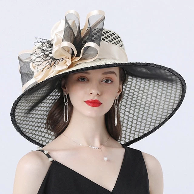 Hut im Kentucky-Derby-Stil, elegantes Design, verziert mit einer Blume und einer großen Schleife.