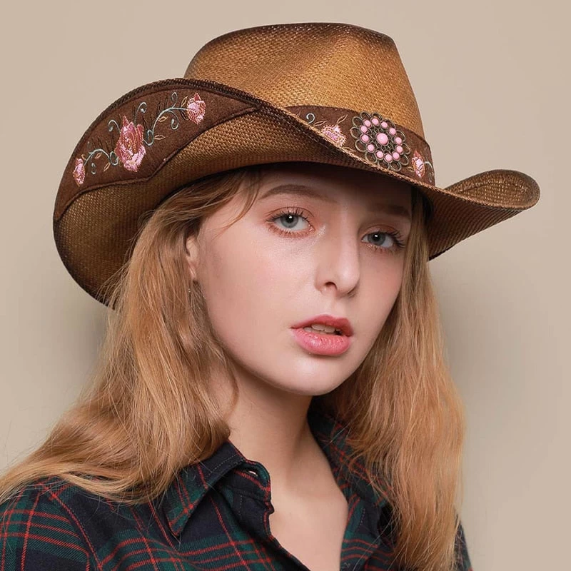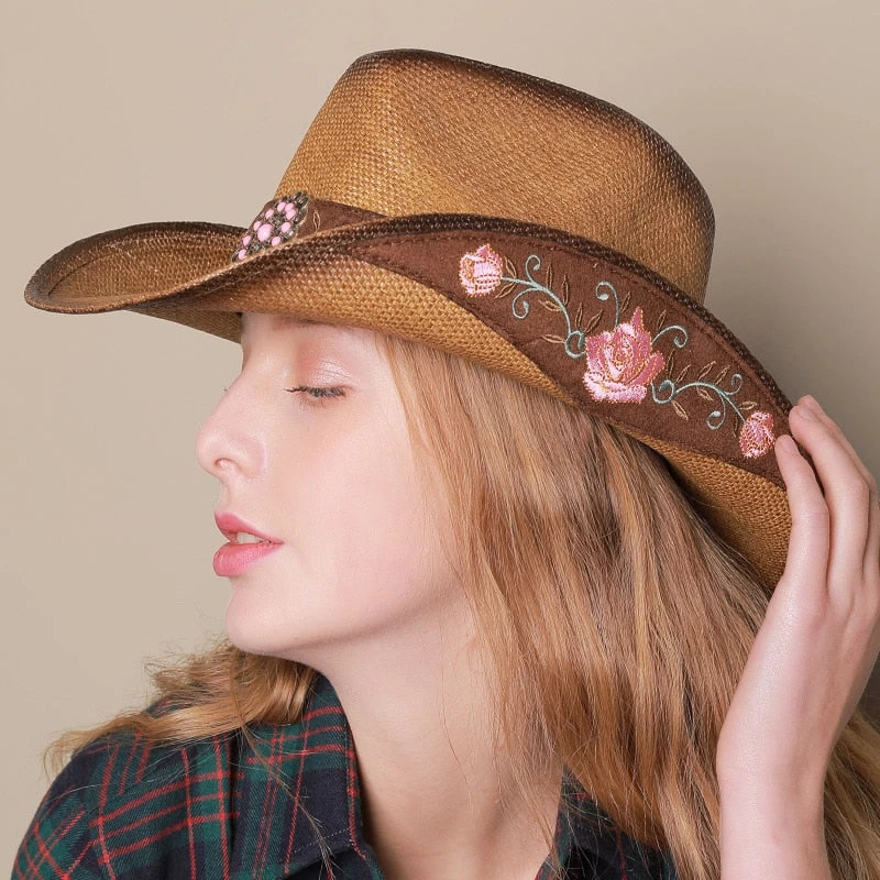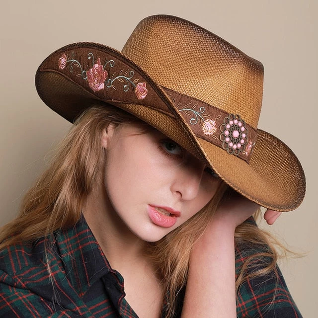 Hut im Cowboy-Stil, Strohdesign mit hochwertiger Stickerei.