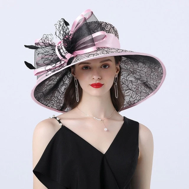 Hut im Organza-Stil, elegantes Design, verziert mit einer großen Schleife.