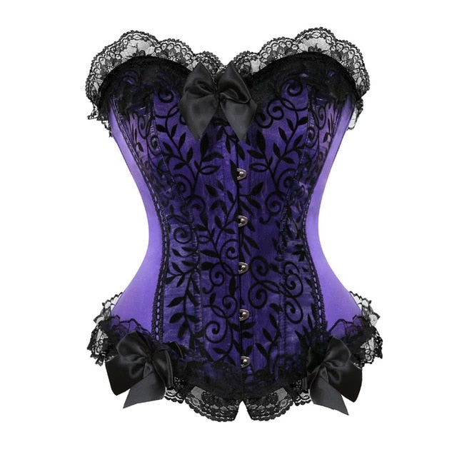 Satin Korsett mit Spitze und Blumenmotiven verziert.