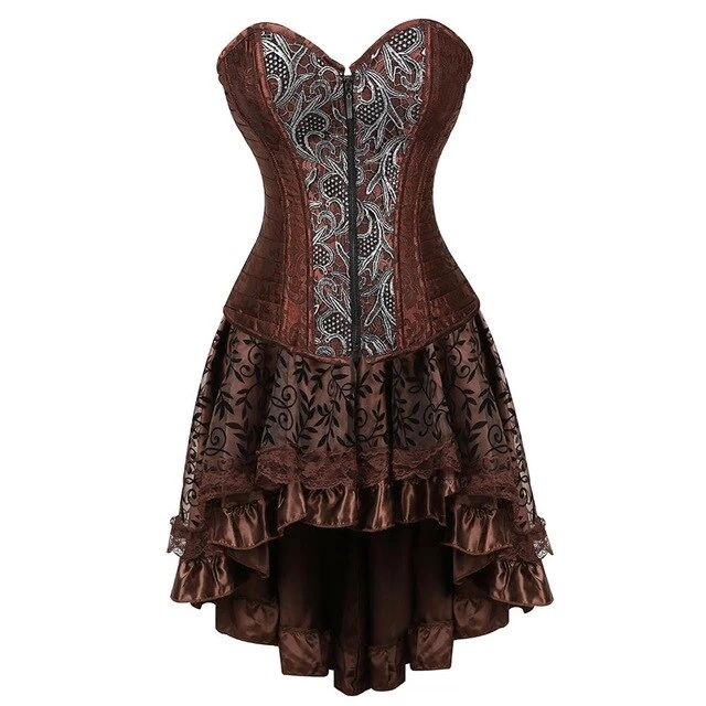 Korsett über Büste. Stahlknochen. Rock. Polyester. Elasthan. Kunstleder. Reißverschluss. Schnürsenkel.