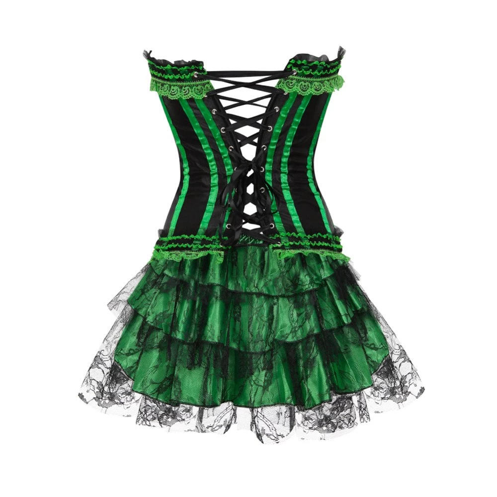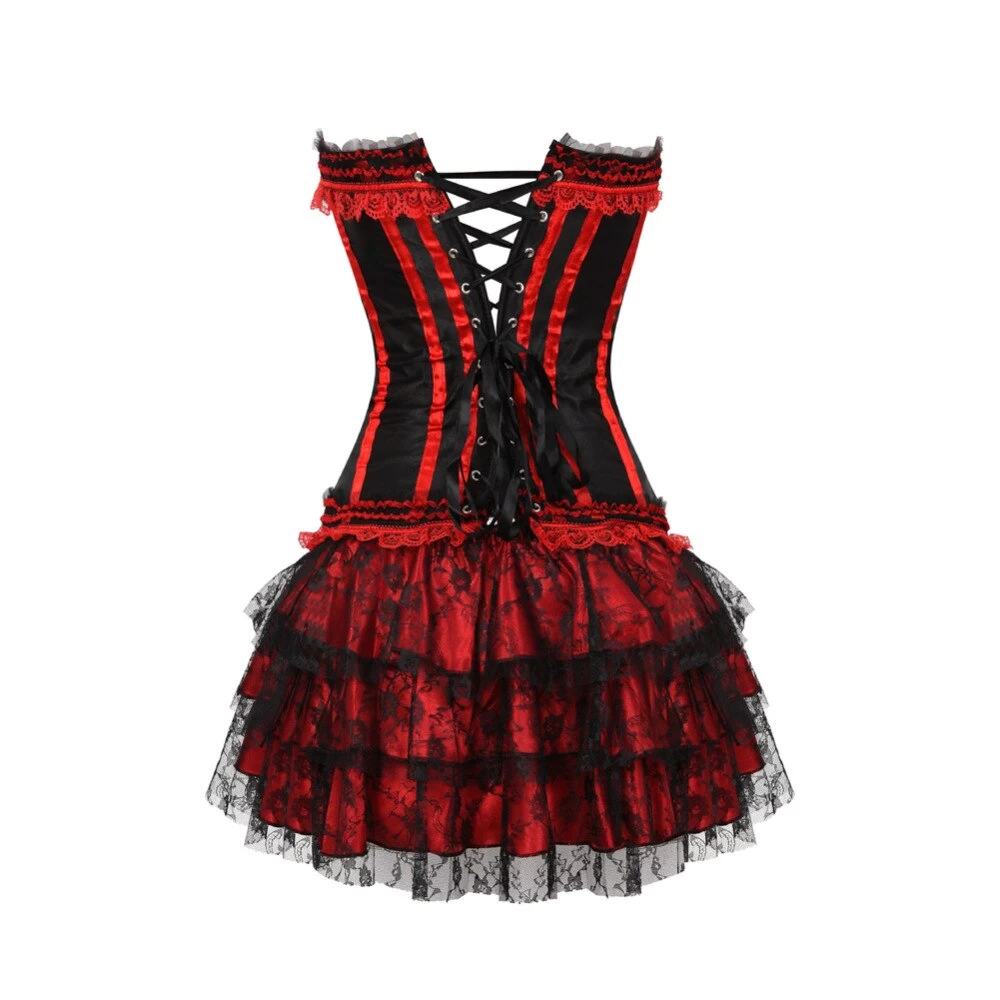 Gestreiftes Satin-Korsettkleid mit mehrschichtigem Satinrock.