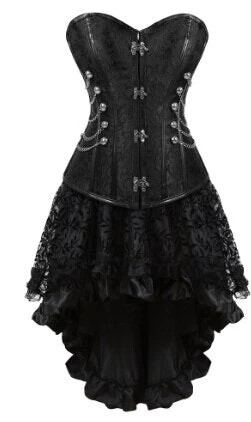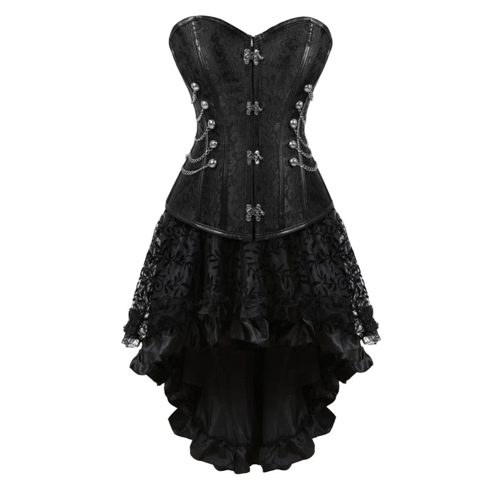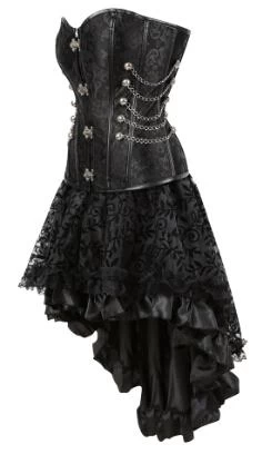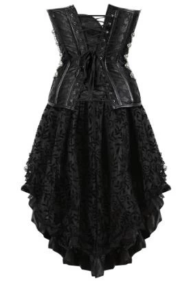 Gotisches Korsettkleid aus Kunstleder mit asymmetrischem Rock.