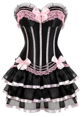 Korsett über Büste. Rock. Polyester. Elasthan. Satin. Mit Schnürsenkeln