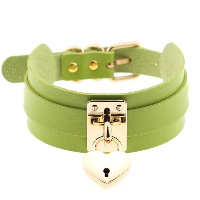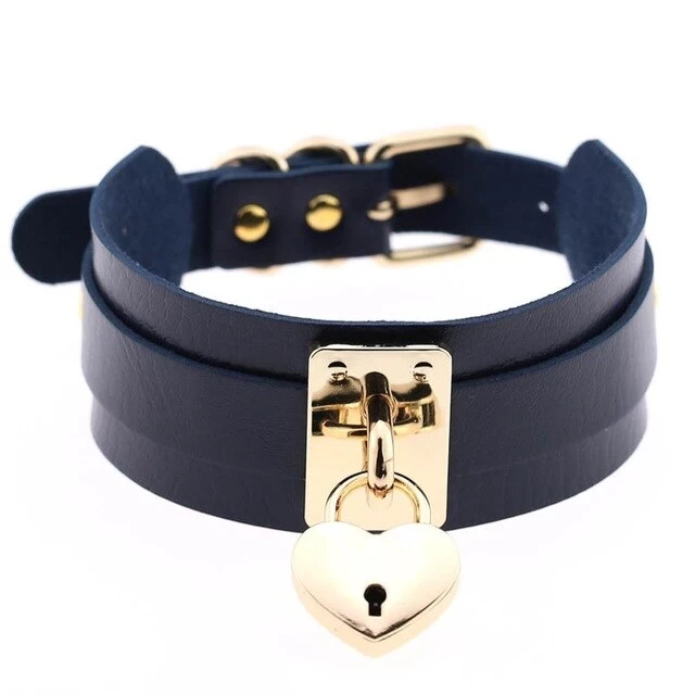 Lederkropfband mit goldenem herzförmigem Schloss.
