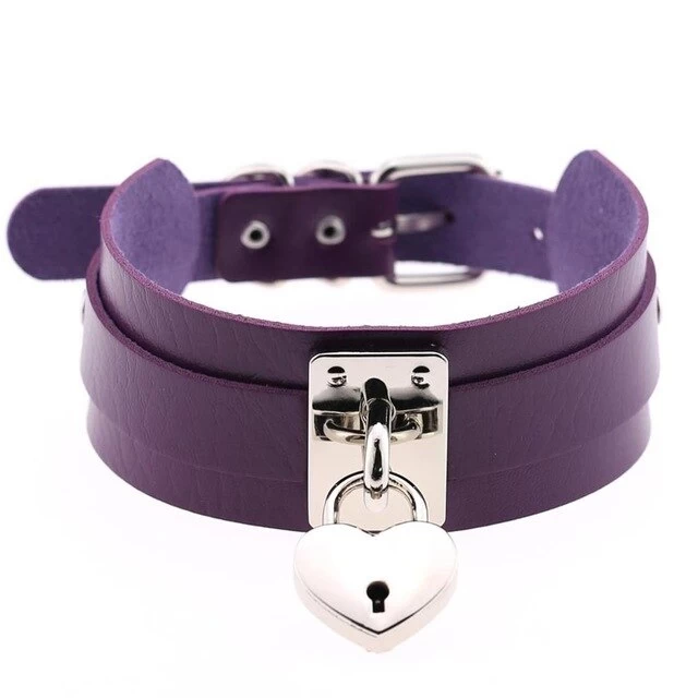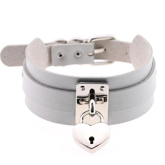 Lederkropfband mit silbernem herzförmigem Schloss.