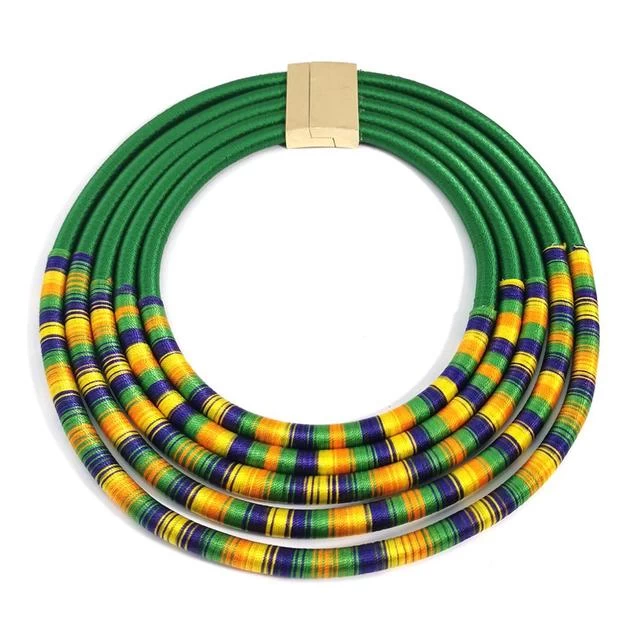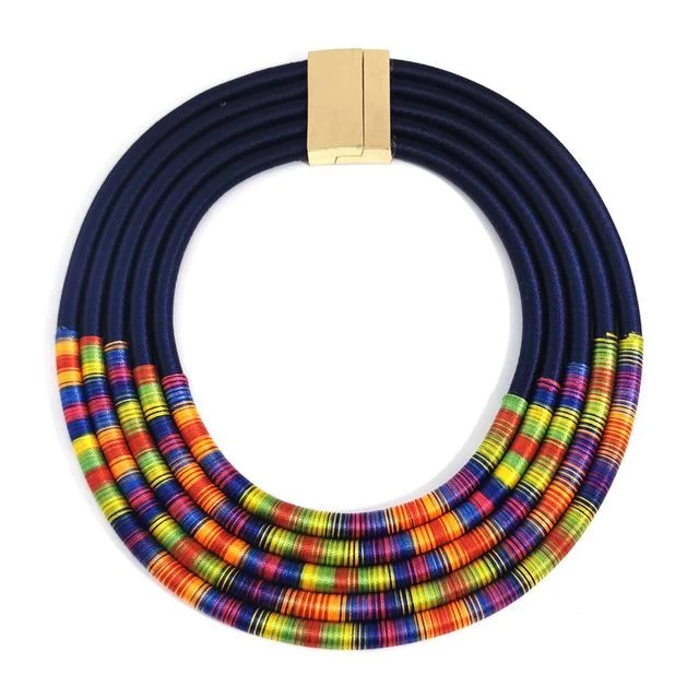 Metallhalsband mit Anhängern, Kordelkette und elegantem Design.