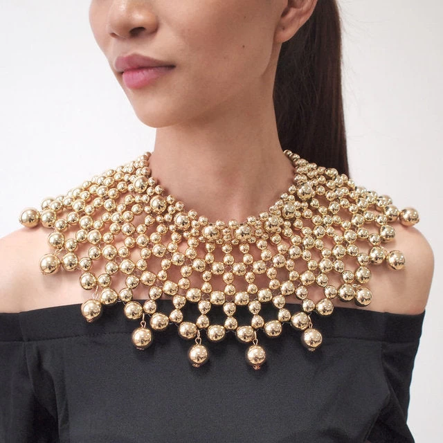 Kropfband aus Metall mit fächerförmigen Zierperlen.