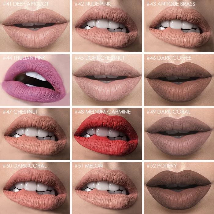 Professioneller Lipgloss mit warmen Farben und einem matten Effekt. Wasserdicht. Lange andauernd.