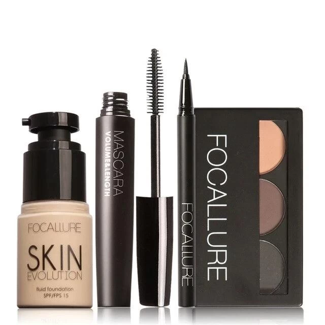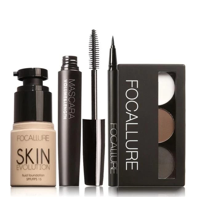 3-Farben-Augenbrauenpuder-Palette + schwarze Wimperntusche + Augen-Eyeliner + Basiscreme.