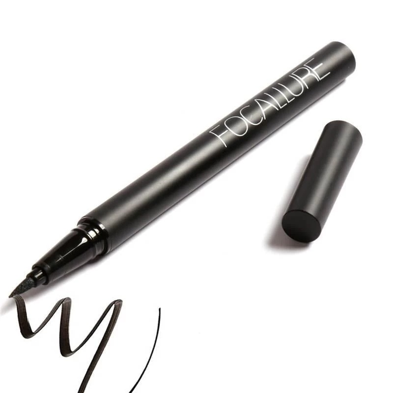Puder + Eyeliner + brauner Augenbrauenstift + Textmarker.
