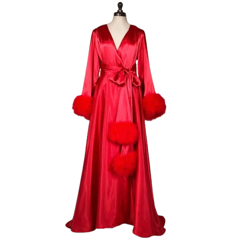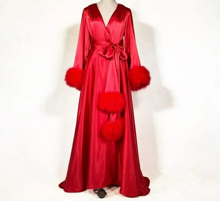 Handgefertigtes Morgenmantel mit langen Ärmeln, sexy und mit Dekorationsfedern.
