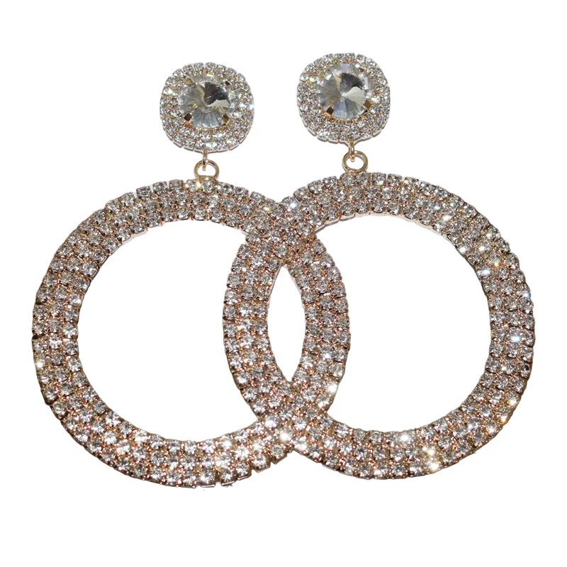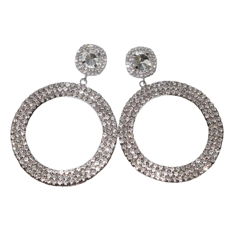 Ohrstecker, glitzernder, großer Kreistropfen mit Strasssteinen