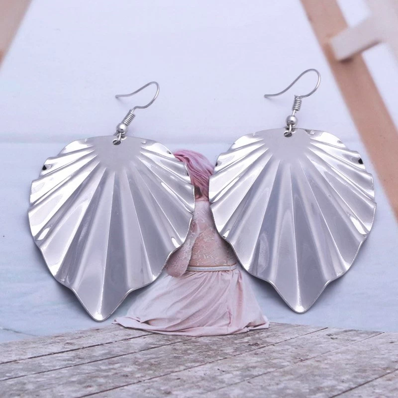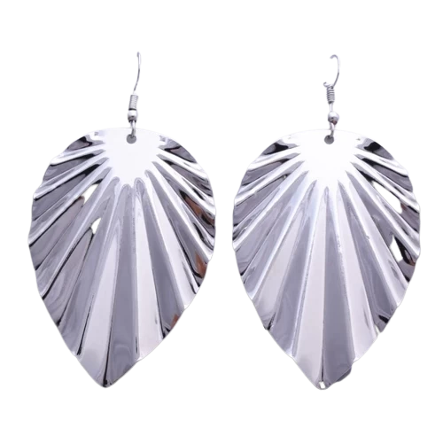 Ohrstecker mit Metallanhänger in Form eines Blattes.