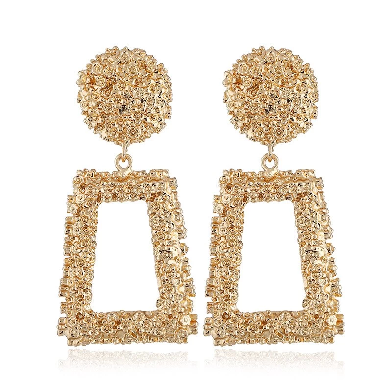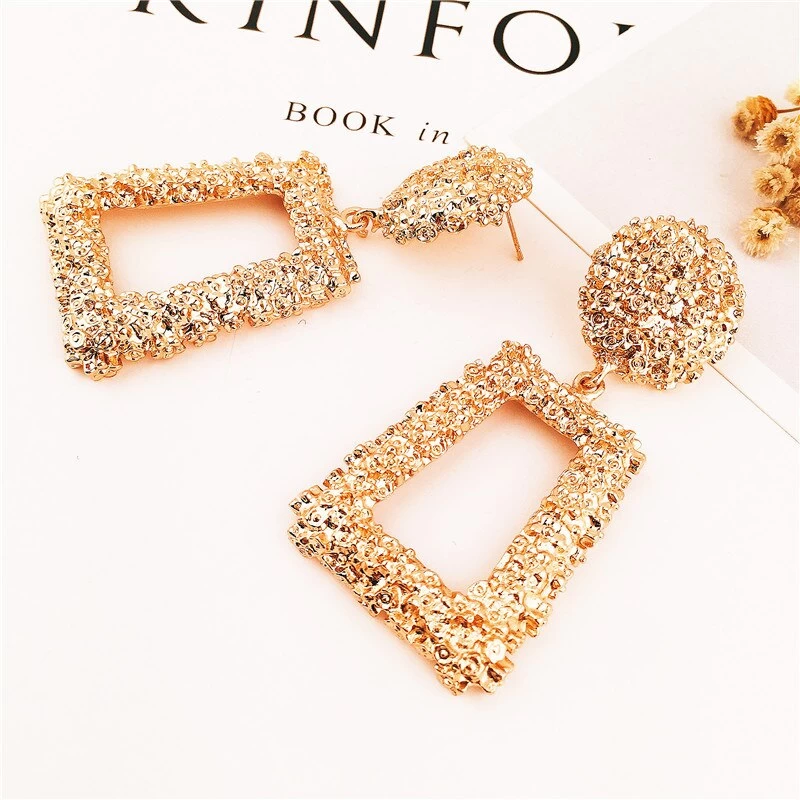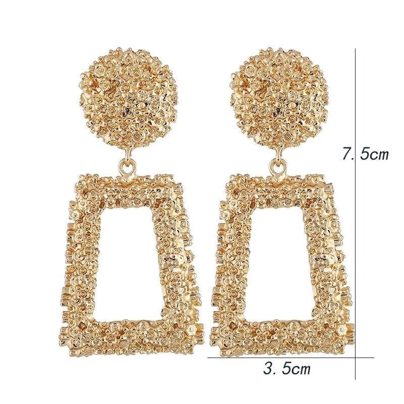 Handgefertigte Heavy Dangle Ohrstecker aus glänzendem Metall.
