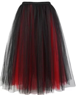 Langer schwarzer und roter Tüllrock mit elastischer Taille.