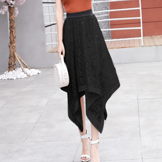 Elastischer Mesh-Tüllrock mit Blumendruck.