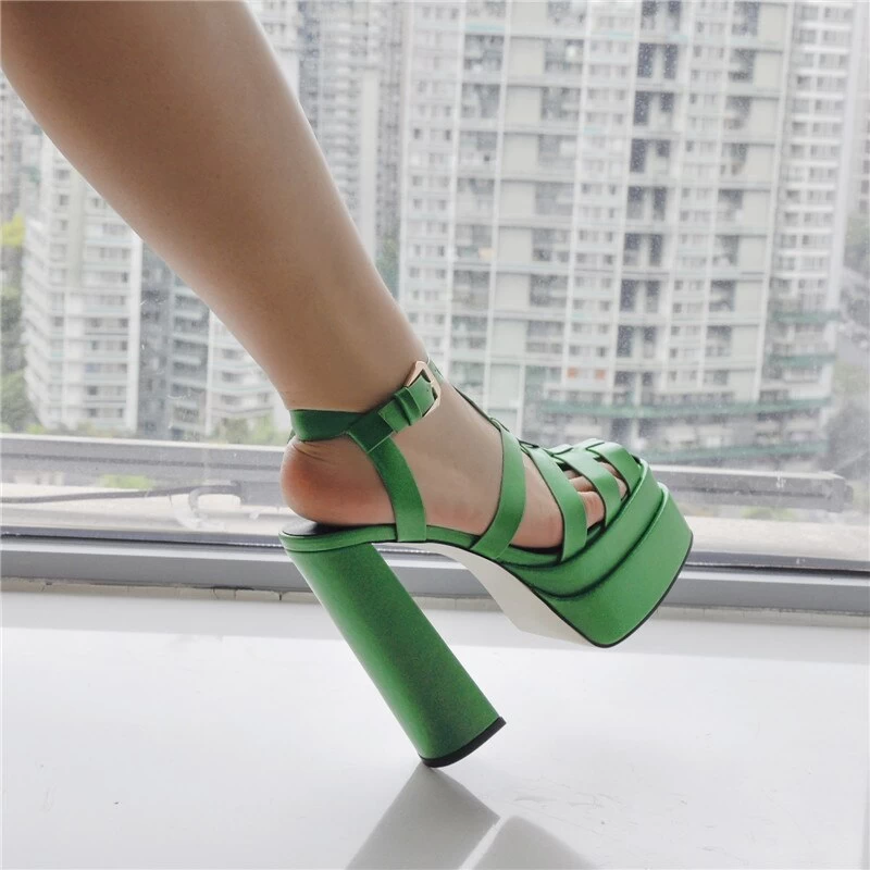Handgemachte Sandalen mit hohem Absatz und Offener spitze. Design mit Trägern und Plateaus.
