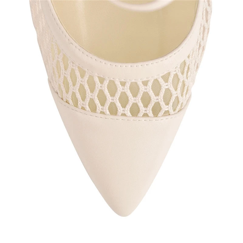 Handgefertigte Schuhe mit hohen Absätzen und spitzer Zehenpartie. Dünner Absatz und doppelter Knöchelriemen.