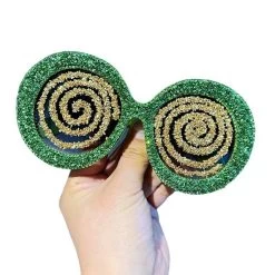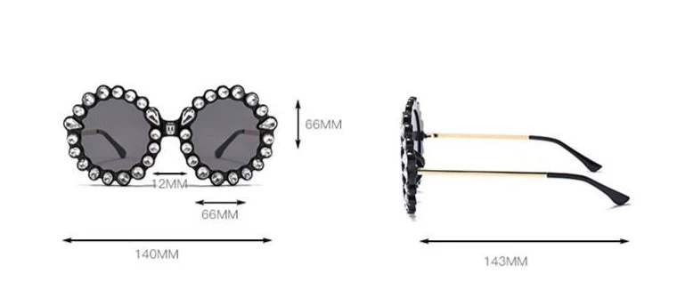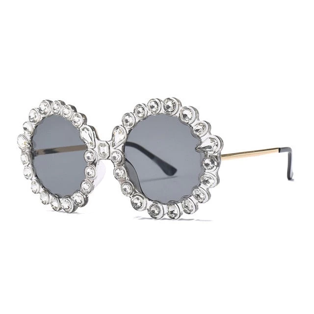 Sonnenbrille mit runder Linse und Kristallrahmen.