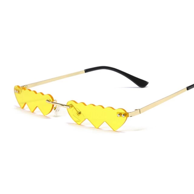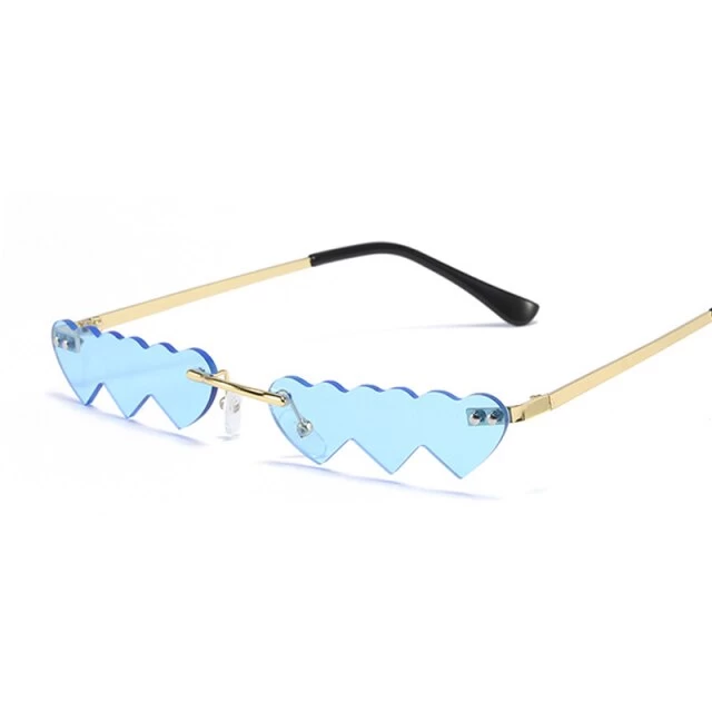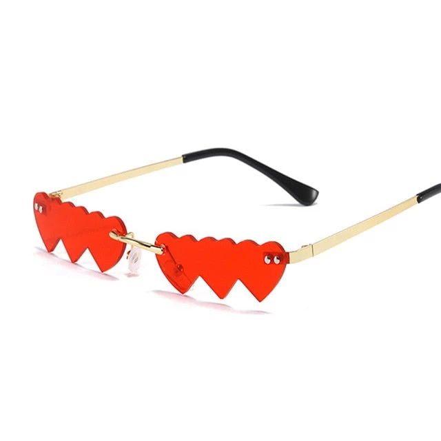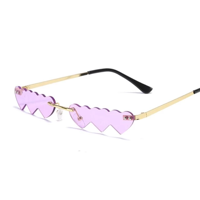 Rahmenlose bunte Sonnenbrille in Multi-Herzform.