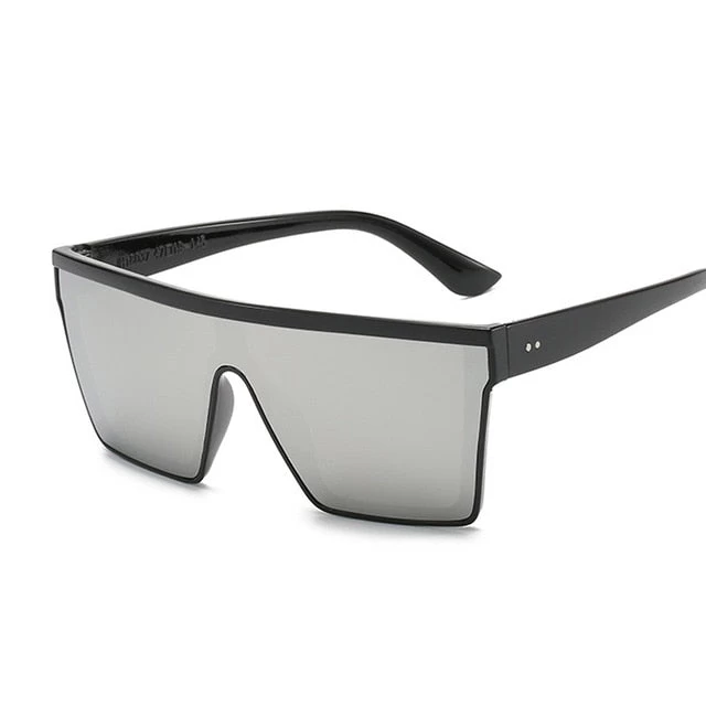 Große Sonnenbrille mit Nudelrahmen und quadratischer Linse.