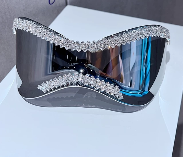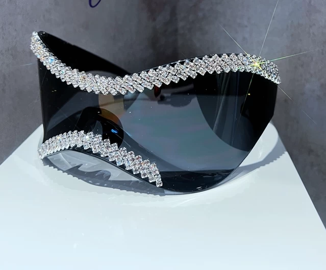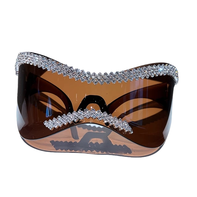Sonnenbrille mit runden Gläsern im Snow-Stil, der Rahmen ist mit Strasssteinen verziert.