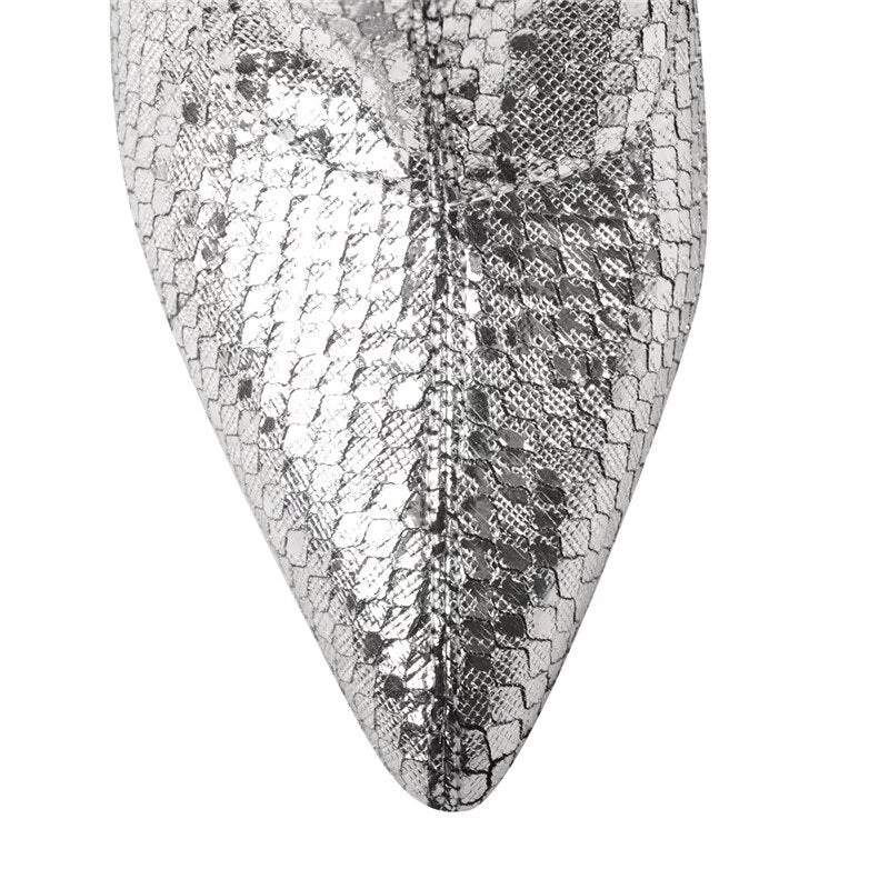 Handgemachte hohe Stiefel mit hohem Absatz und spitzer Zehenpartie. Dünne Absätze mit Reißverschluss.