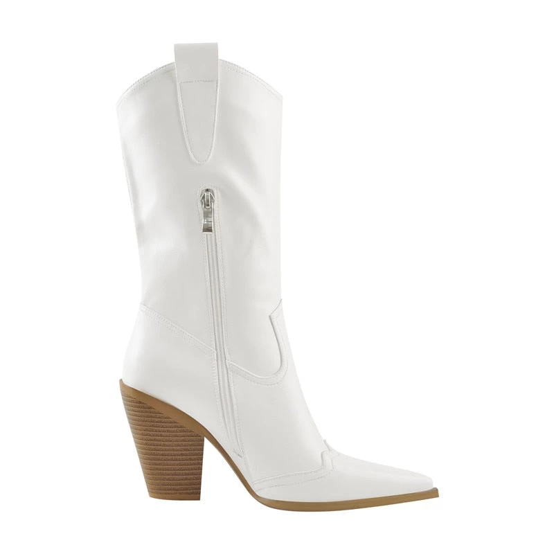Handgefertigte Stiefel mit dickem Absatz und spitzer Zehenpartie. Elegantes Design mit Reißverschluss.