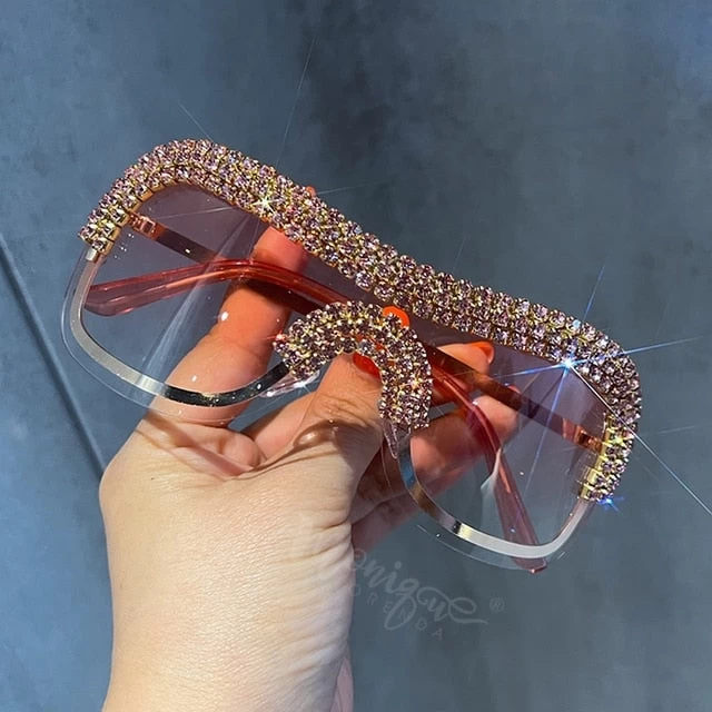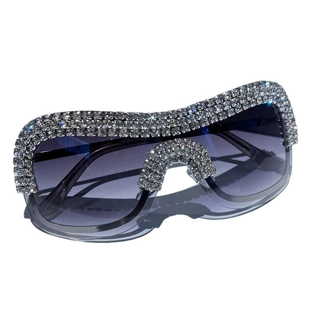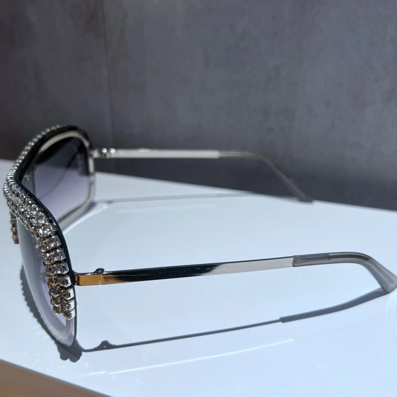 Große Sonnenbrille im Vintage-Stil mit strassbesetztem Rahmen.